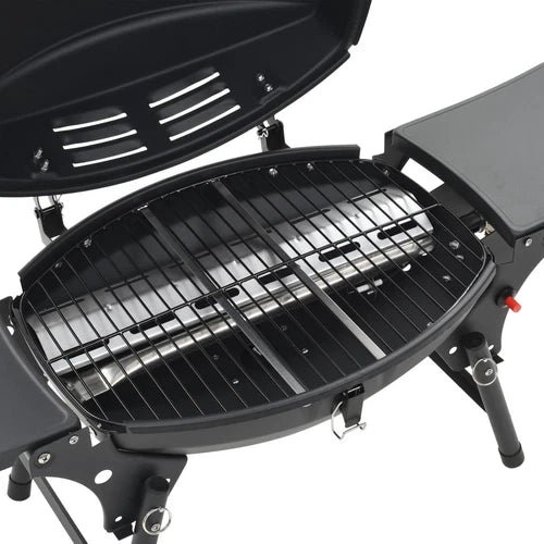 Barbecue à Gaz Portatif 2 Zone de Cuisson Noir Terrasse Grill de Jardin