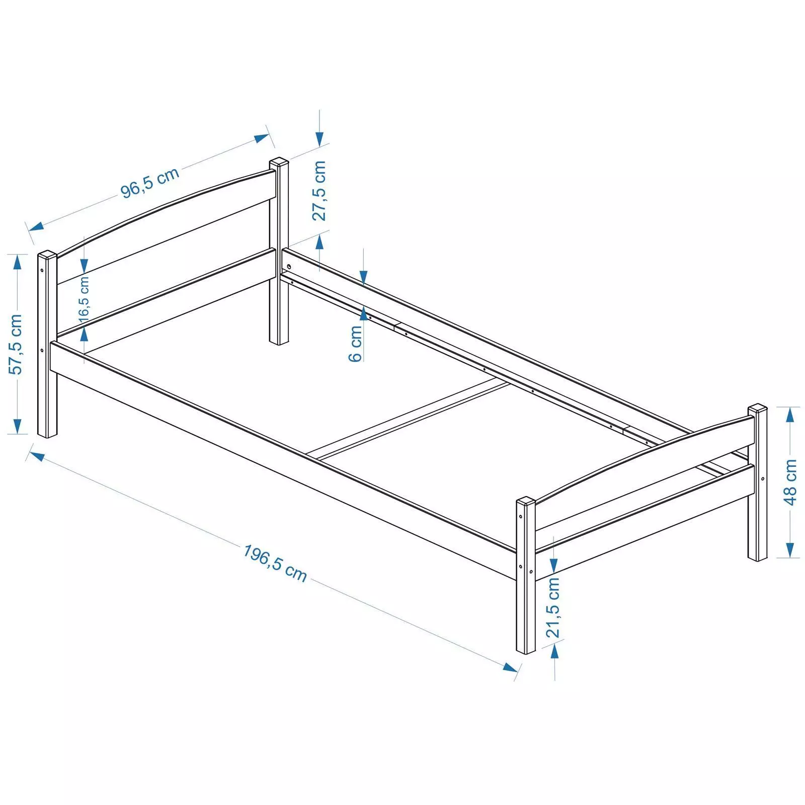- Dimensions du lit monté (L x H x P) : 97 x 58 x 197 cm