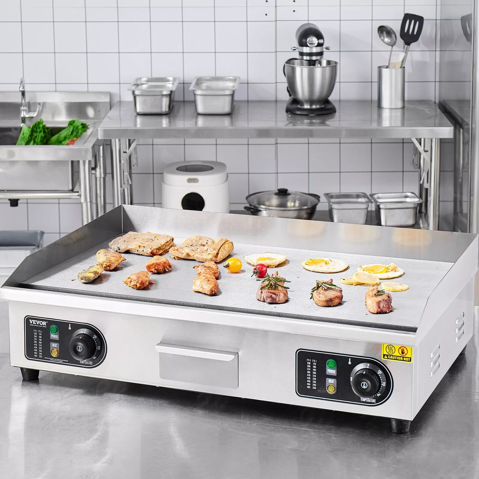 • Large application : le gril électrique commercial à dessus plat convient aussi bien aux environnements domestiques que commerciaux, tels que les restaurants, les magasins, les stands en bordure de route et les snack-bars. Il est parfait pour préparer des crêpes, du bacon croustillant, du fromage grillé, des petits déjeuners copieux, des plats frits, des omelettes, des pizzas, des steaks et des burgers.