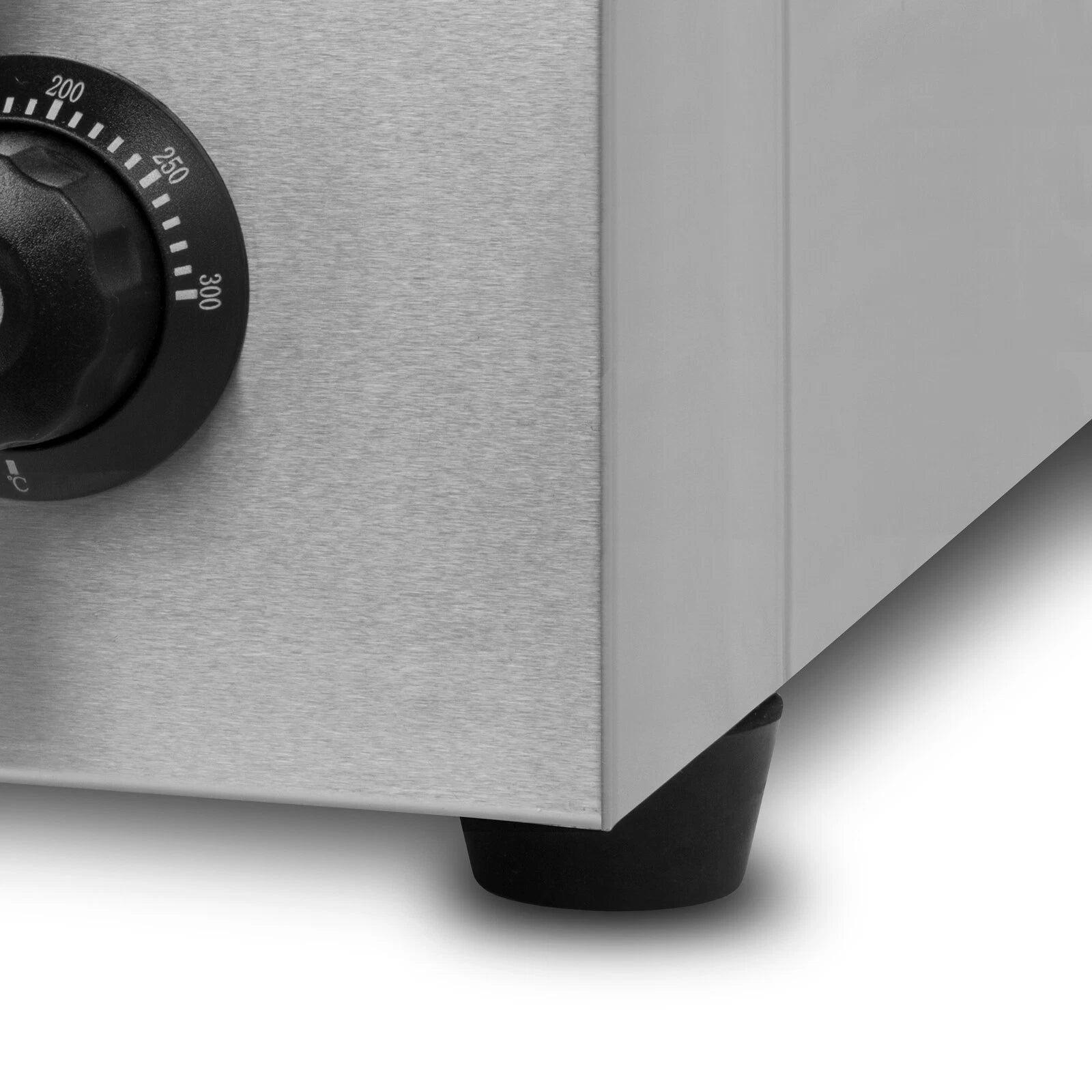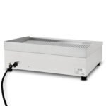 La plaque de gril vertes FD5-G7-03 est un appareil électrique professionnel d’une puissance de 4400 watts. Il a été spécialement conçu pour le secteur de la restauration, mais peut également être utilisé à titre privé. Le gril électrique est idéal pour une utilisation dans les snacks, les restaurants ou les services de restauration. Il est flexible et convient parfaitement à la préparation de la viande, des galettes, des paninis ou des légumes.